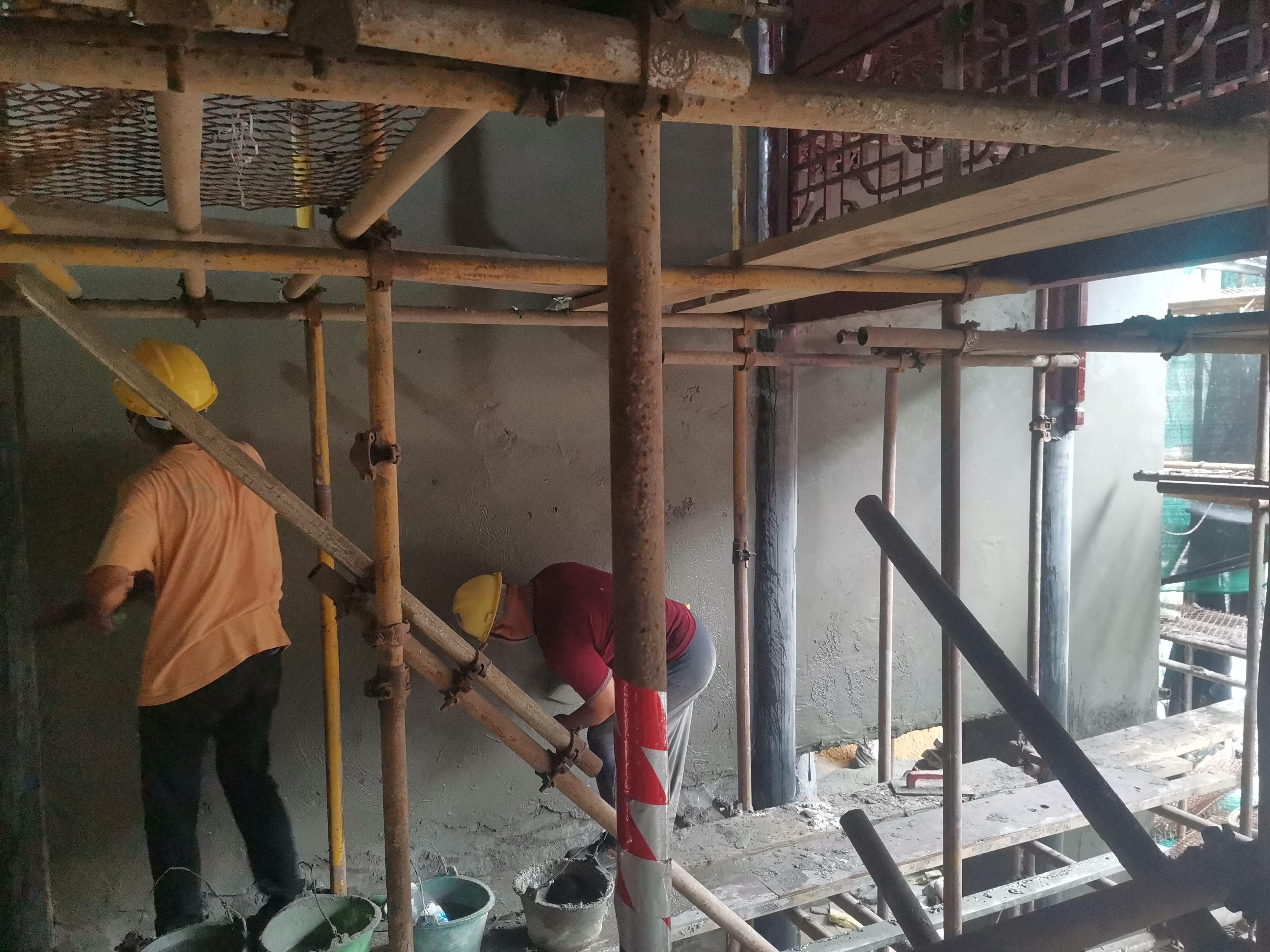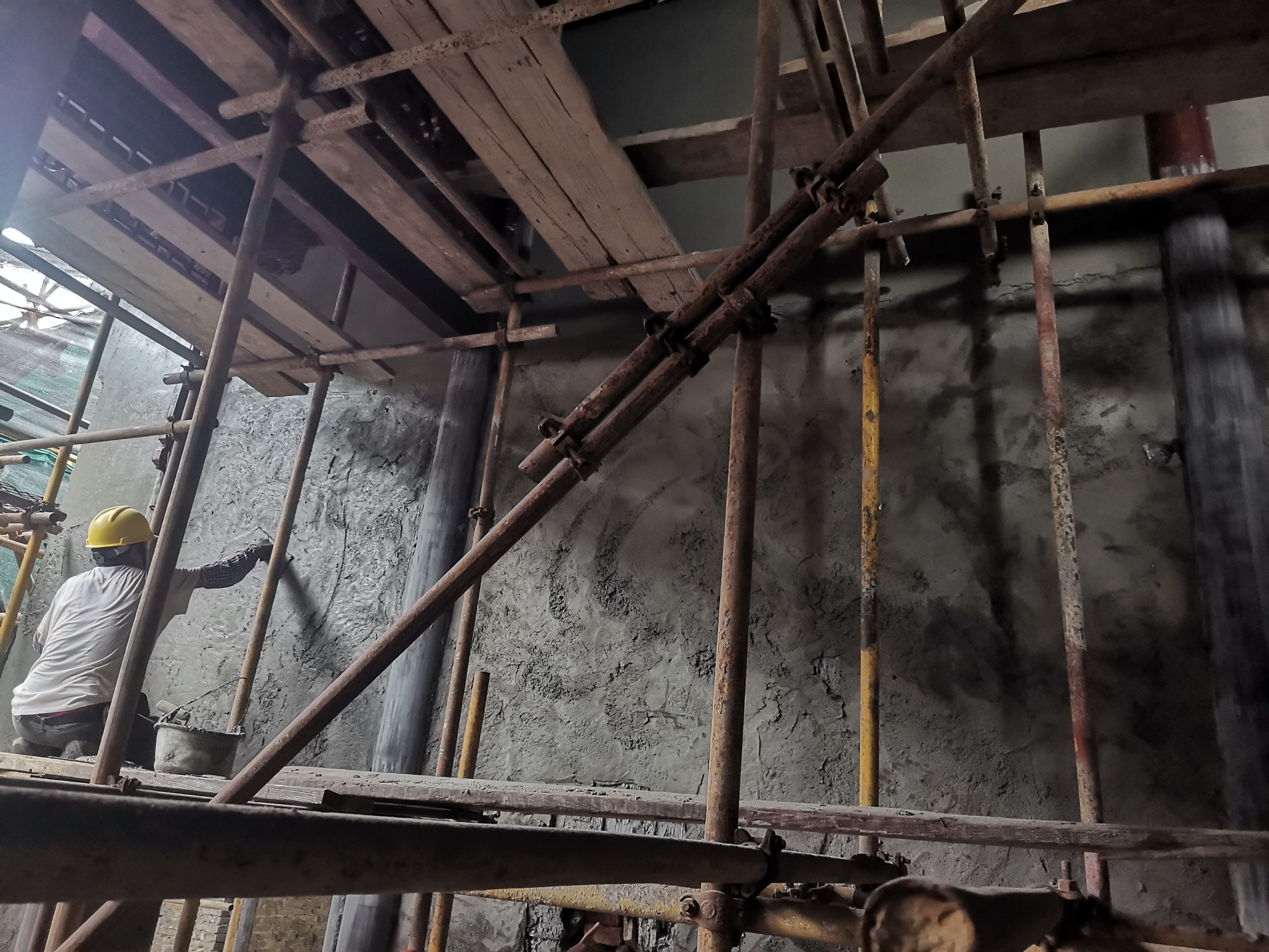 针对曾国葆祠堂的复杂问题,修缮团队秉持“最小干预”原则,创新采用传统工艺与现代技术结合的高延性混凝土加固方案。在不破坏原建筑风貌的基础上,针对结构破损墙体进行有效加固修缮,以提升结构的整体性与安全性。